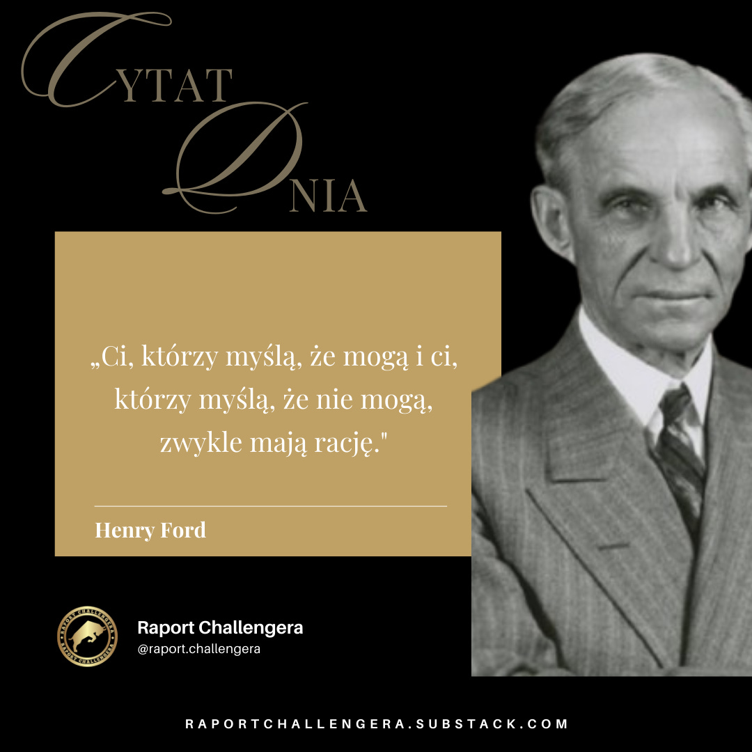 „Ci, którzy myślą, że mogą, i ci, którzy myślą, że nie mogą, zwykle mają rację.” – to nie tylko mądrość, to wyzwanie. Ten cytat Henry'ego Forda, człowieka, który zrewolucjonizował świat motoryzacji, to strzał w sedno naszej codziennej walki – z samymi sobą. Ford wiedział, co mówi. Zbudował imperium w czasach, gdy większość ludzi nie wierzyła w masową produkcję samochodów. Ale on uwierzył. Najpierw w swoje myśli, potem w swoje możliwości.