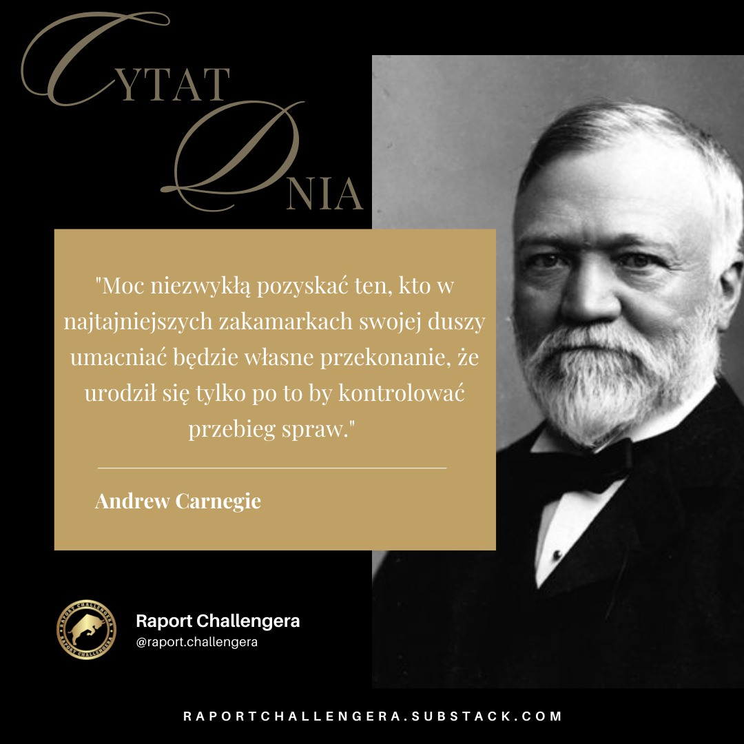 "Moc niezwykłą pozyska ten, kto w najtajniejszych zakamarkach swojej duszy umacniać będzie własne przekonanie, że urodził się tylko po to, by kontrolować przebieg spraw." — Andrew Carnegie