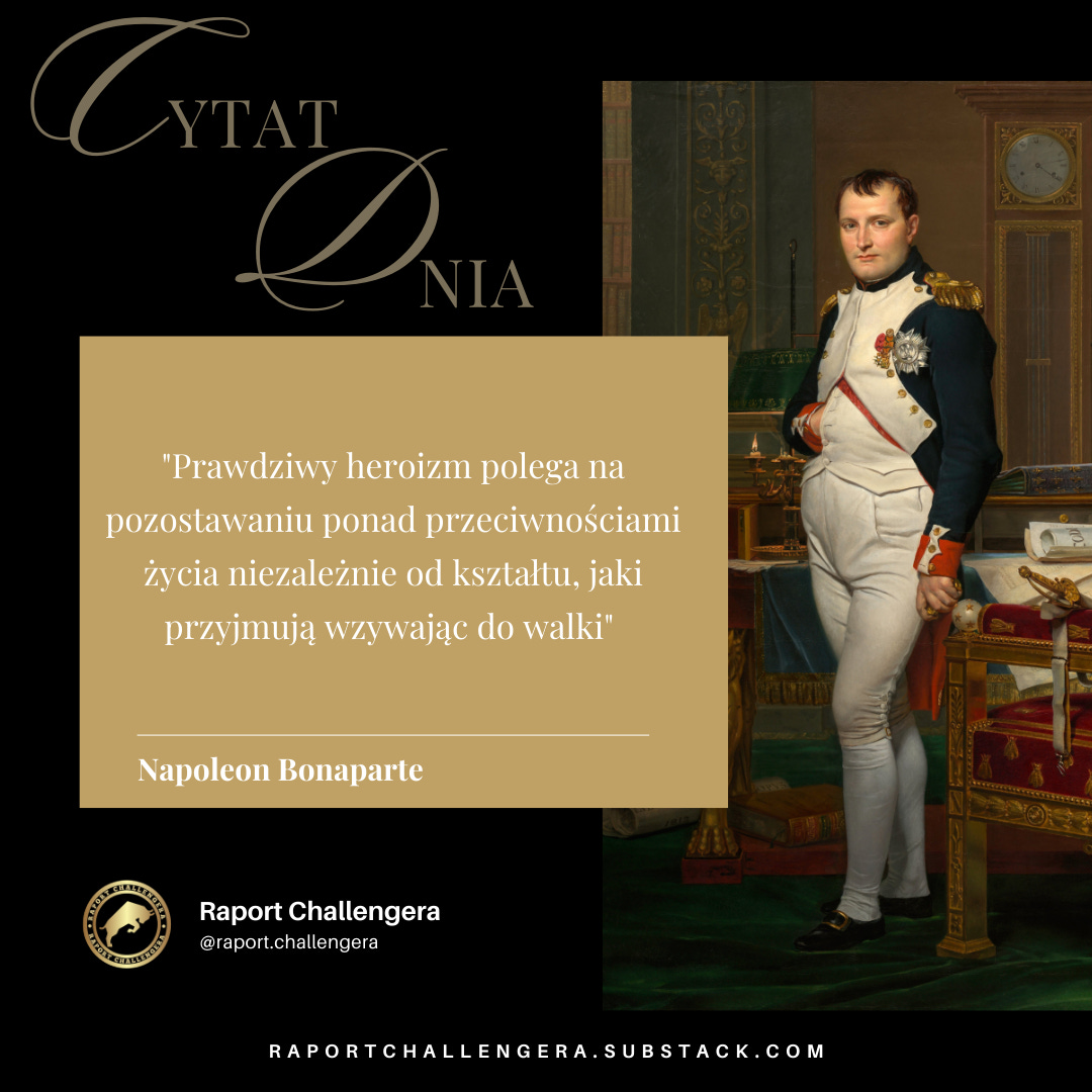 Cytat Napoleona: "Prawdziwy heroizm polega na pozostawaniu ponad przeciwnościami życia niezależnie od kształtu, jaki przyjmują wzywając do walki" jest dla mnie niezwykle inspirujący. Przypomina mi, że prawdziwy bohater to nie tylko ktoś, kto dokonuje wielkich czynów, ale także ktoś, kto codziennie stawia czoła wyzwaniom życia z determinacją i odwagą. Każda trudność jest szansą na pokazanie swojej siły i na rozwój. Dlatego staram się, niezależnie od okoliczności, pozostawać silny i nie poddawać się. Mam nadzieję, że ten cytat również dla Ciebie będzie źródłem inspiracji i motywacji w trudnych chwilach.