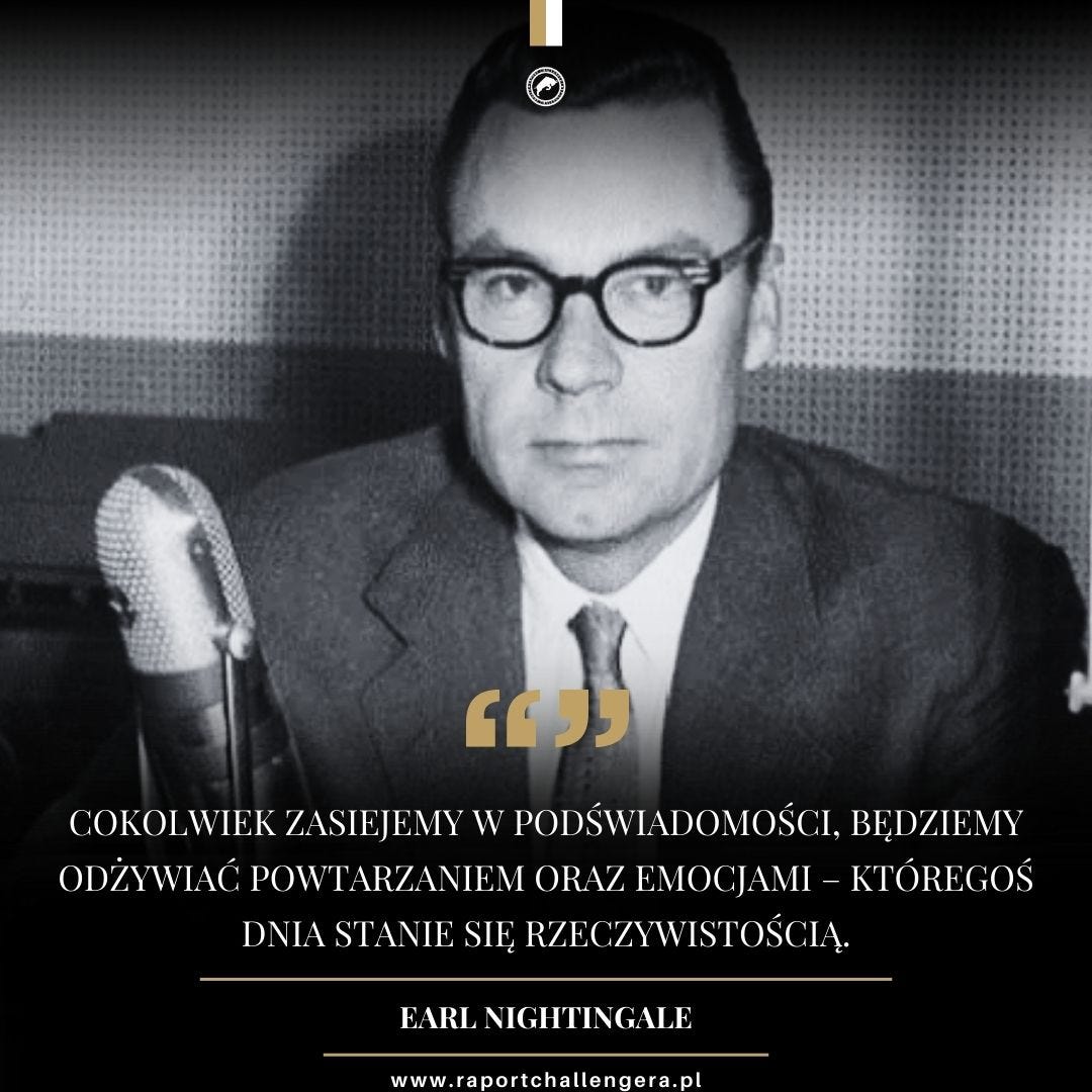 Earl Nightingale mówi jasno: Twoja podświadomość nie wybiera. Ona przyjmuje wszystko, czym ją karmisz. A potem oddaje to w Twoim życiu z nawiązką.