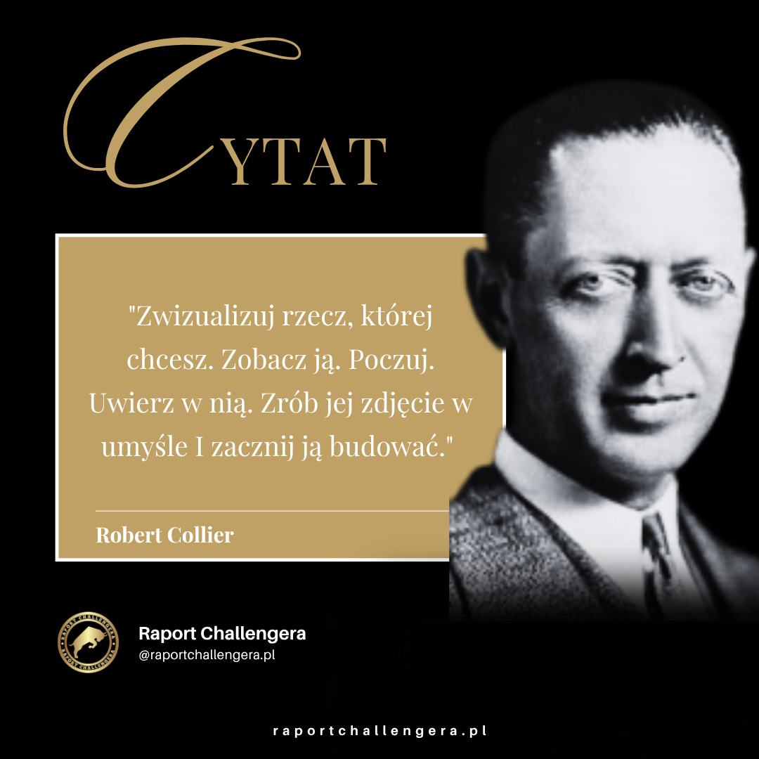 Robert Collier – autor i mistrz motywacji, który wiedział, że umysł to najpotężniejsze narzędzie, jakie mamy. Jego cytat brzmi jak instrukcja obsługi marzeń: nie wystarczy chcieć, trzeba zobaczyć, poczuć i uwierzyć, a potem działać.