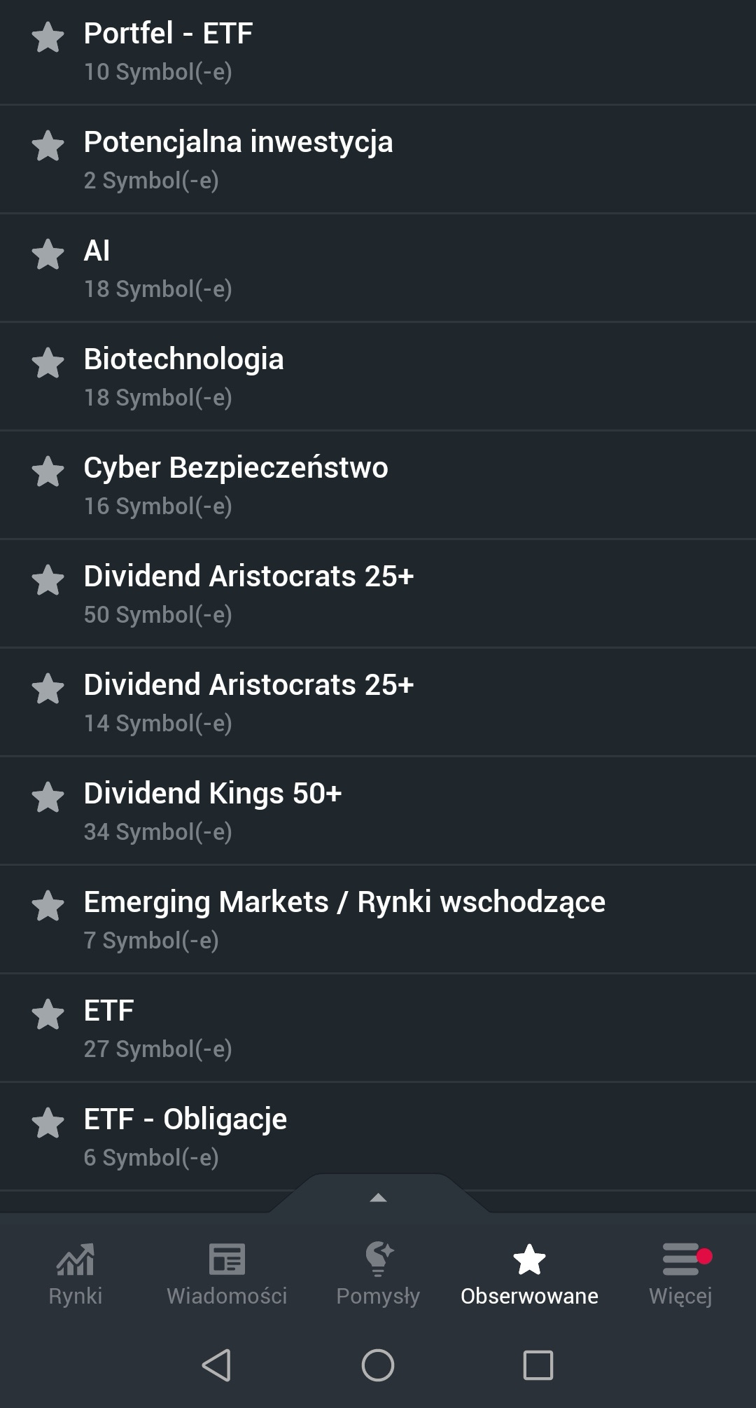 Mam swoje ulubione ETF-y, akcje z potencjałem i kilka spekulacyjnych strzałów. Zamiast trzymać to w głowie czy w Excelu, wrzucam wszystko na listy w Investing. Prosty podział: "obserwuj" albo "kup na spadku" i żyję spokojniej.